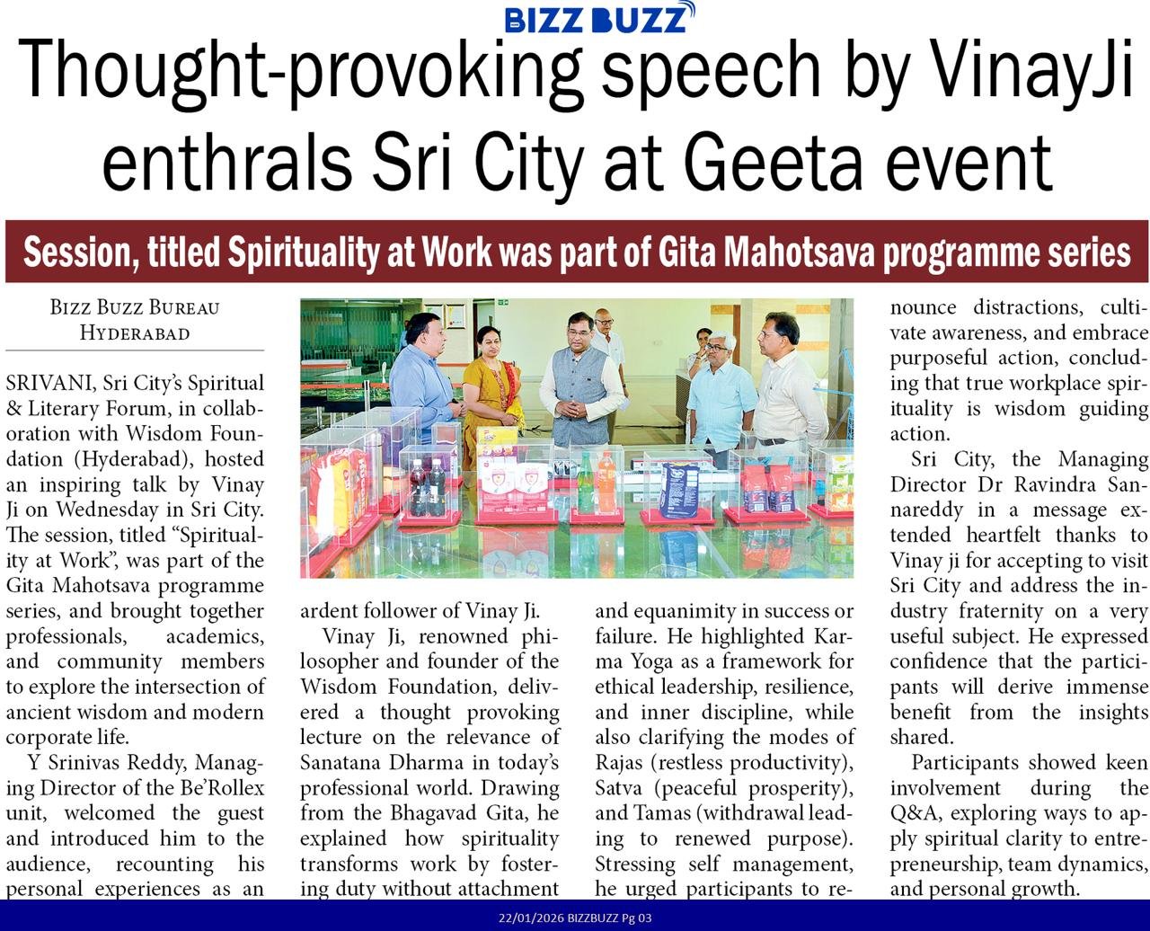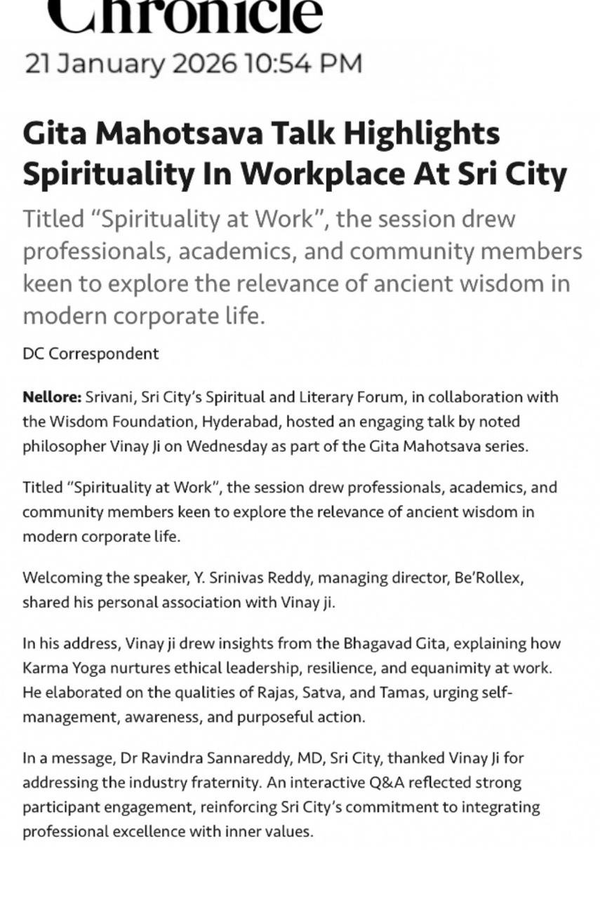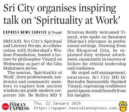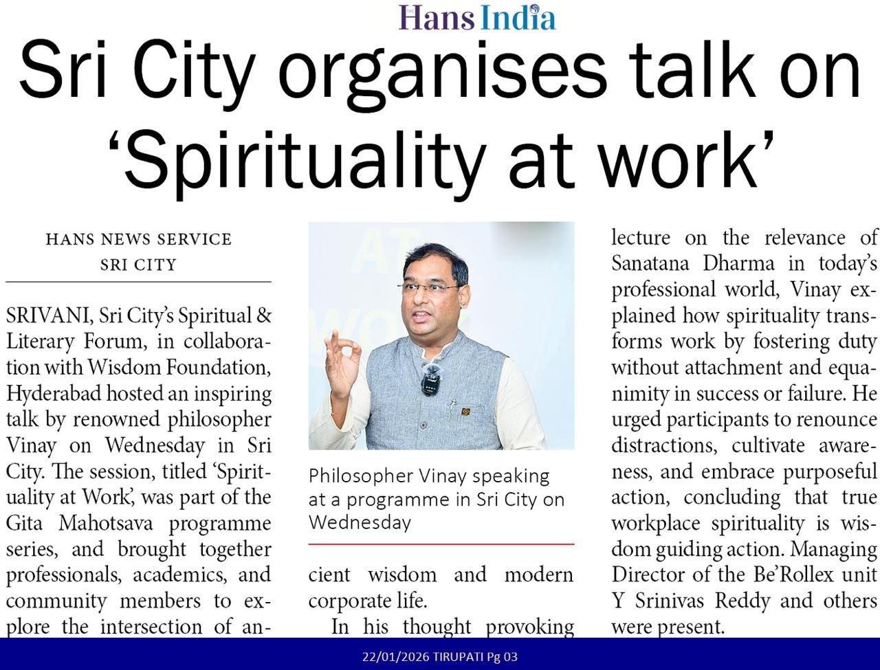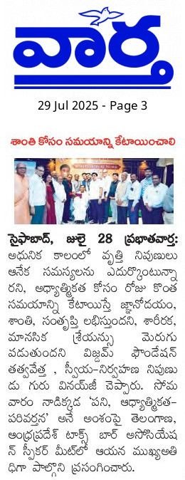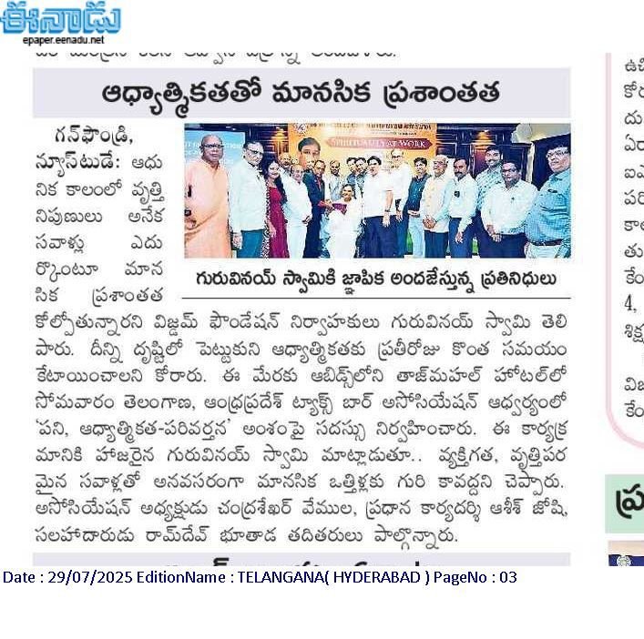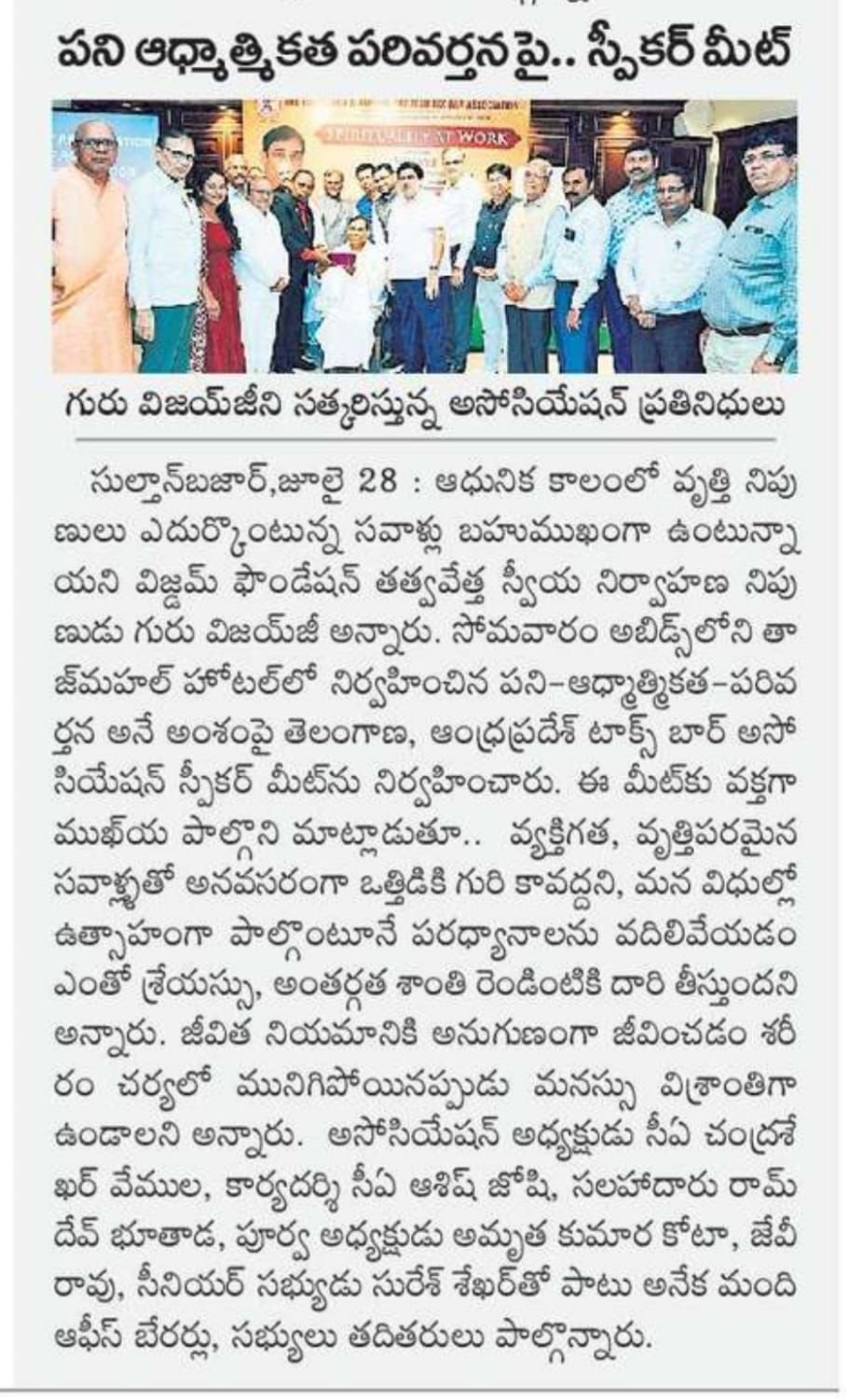 The Telangana & Andhra Pradesh Tax Bar Association – Address by Vinayji on 26th July 2025 on Spirituality at Work.